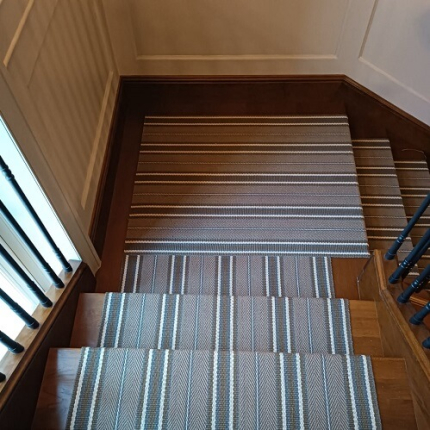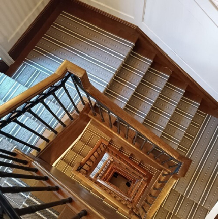 Укладка ковровой дорожки на лестницу методом 100% приклеивания.