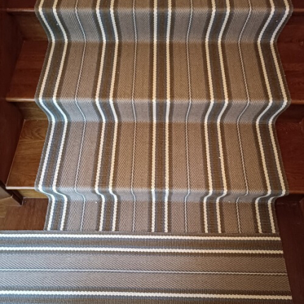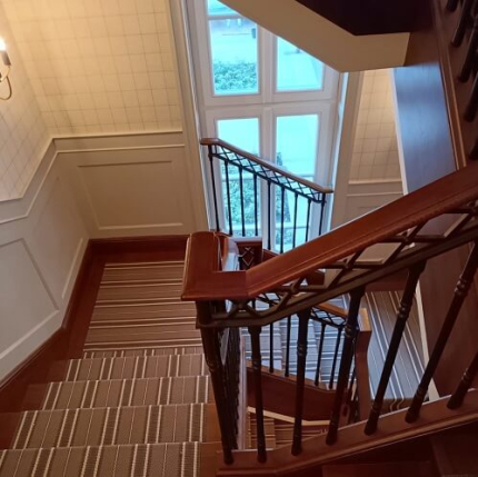 Укладка ковровой дорожки на лестницу методом 100% приклеивания.
